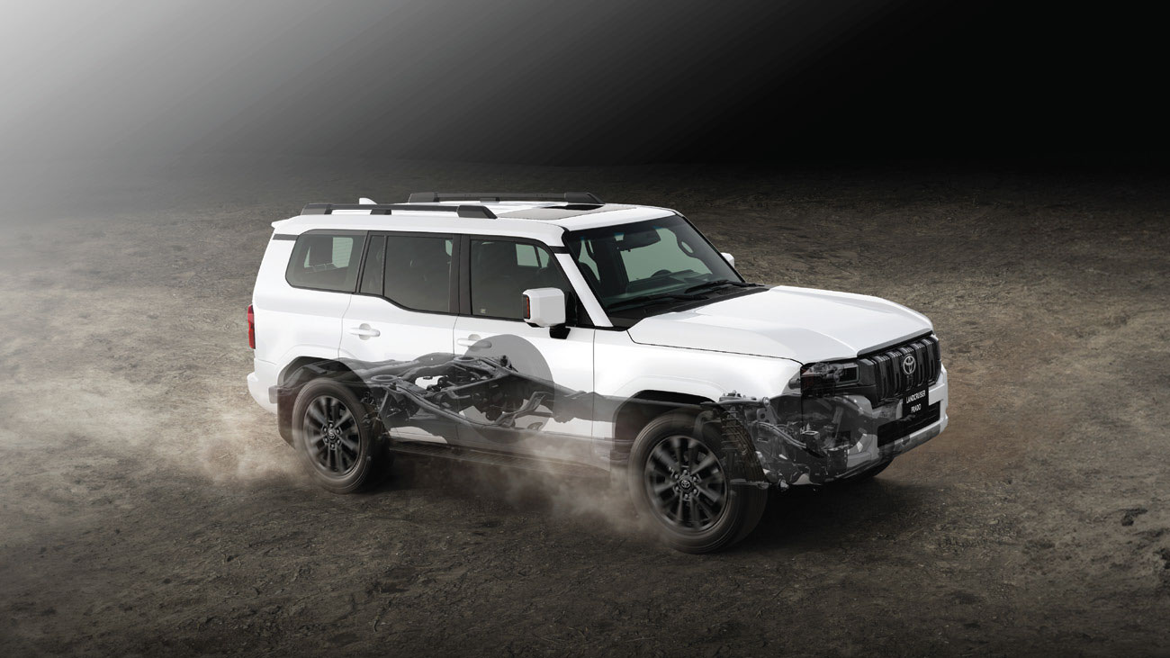 Khả năng vận hành mạnh mẽ cùng những tính năng an toàn vượt trội của Land tự hào đưa bạn chinh phục những vùng đất hiểm trở nhất. Với triết lý “tạo ra những chiếc xe tốt hơn bao giờ hết”, thông qua định hướng thiết kế toàn cầu mới (TNGA), Toyota đã tái thiết kế toàn bộ cấu trúc khung gầm, củng cố nền tảng cốt lõi, nâng cao tính linh hoạt, ổn định và tầm quan sát tốt hơn, giúp Land Cruiser Prado vững vàng chinh phục mọi địa hình.